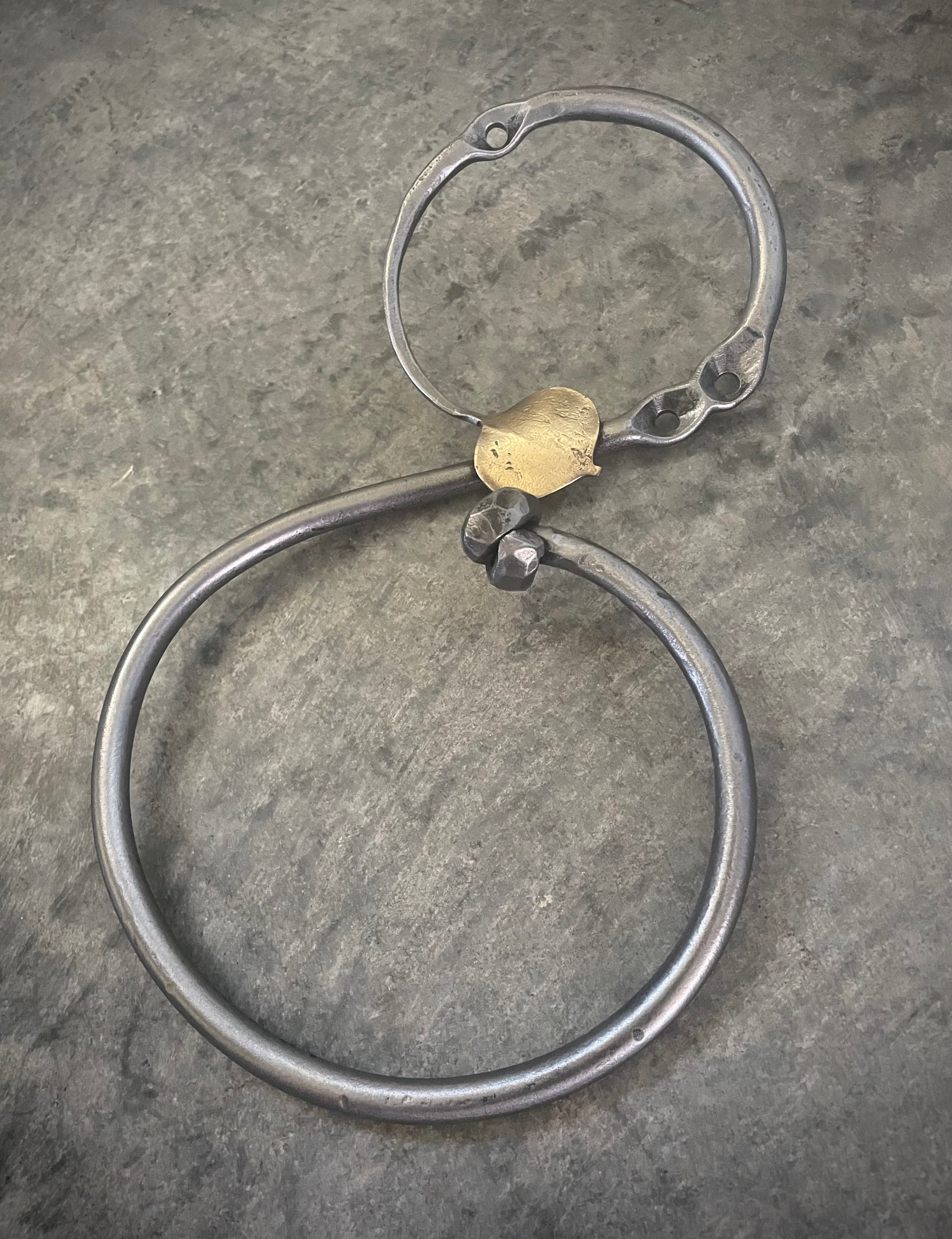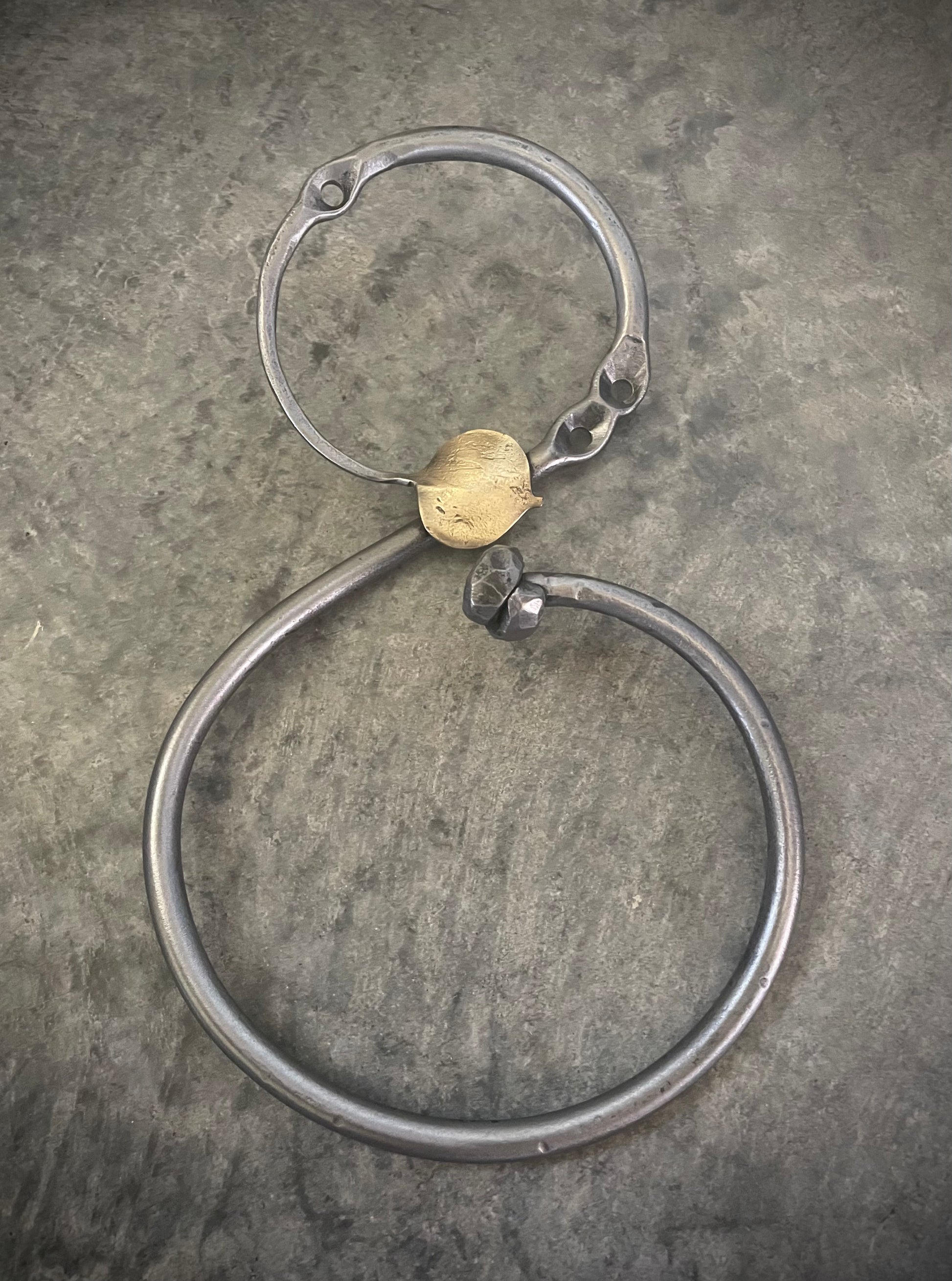 This towel ring was hand forged using recycled steel and finished with an environmentally friendly clear coat. Brass patina on leaf. Comes with three screws.
